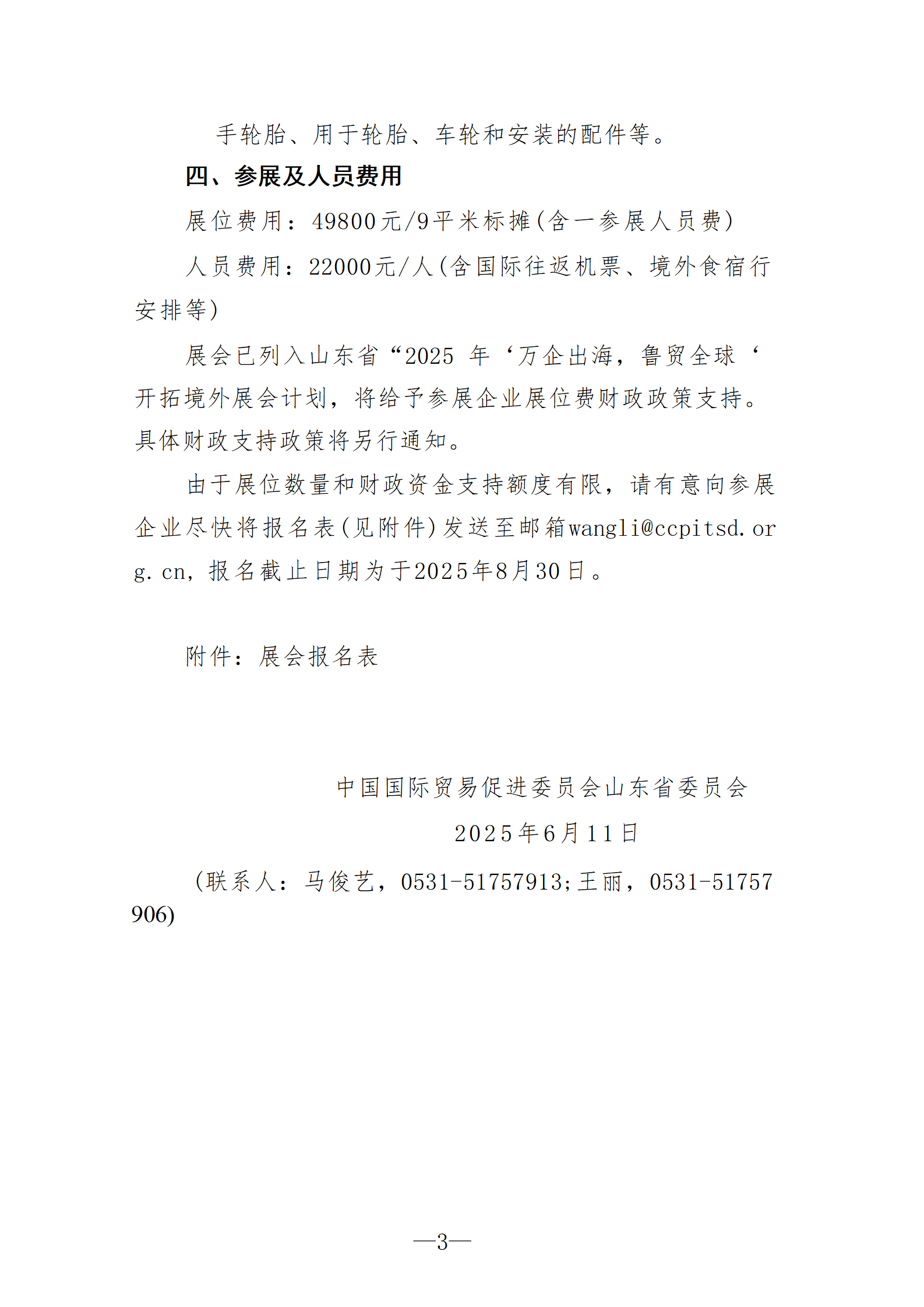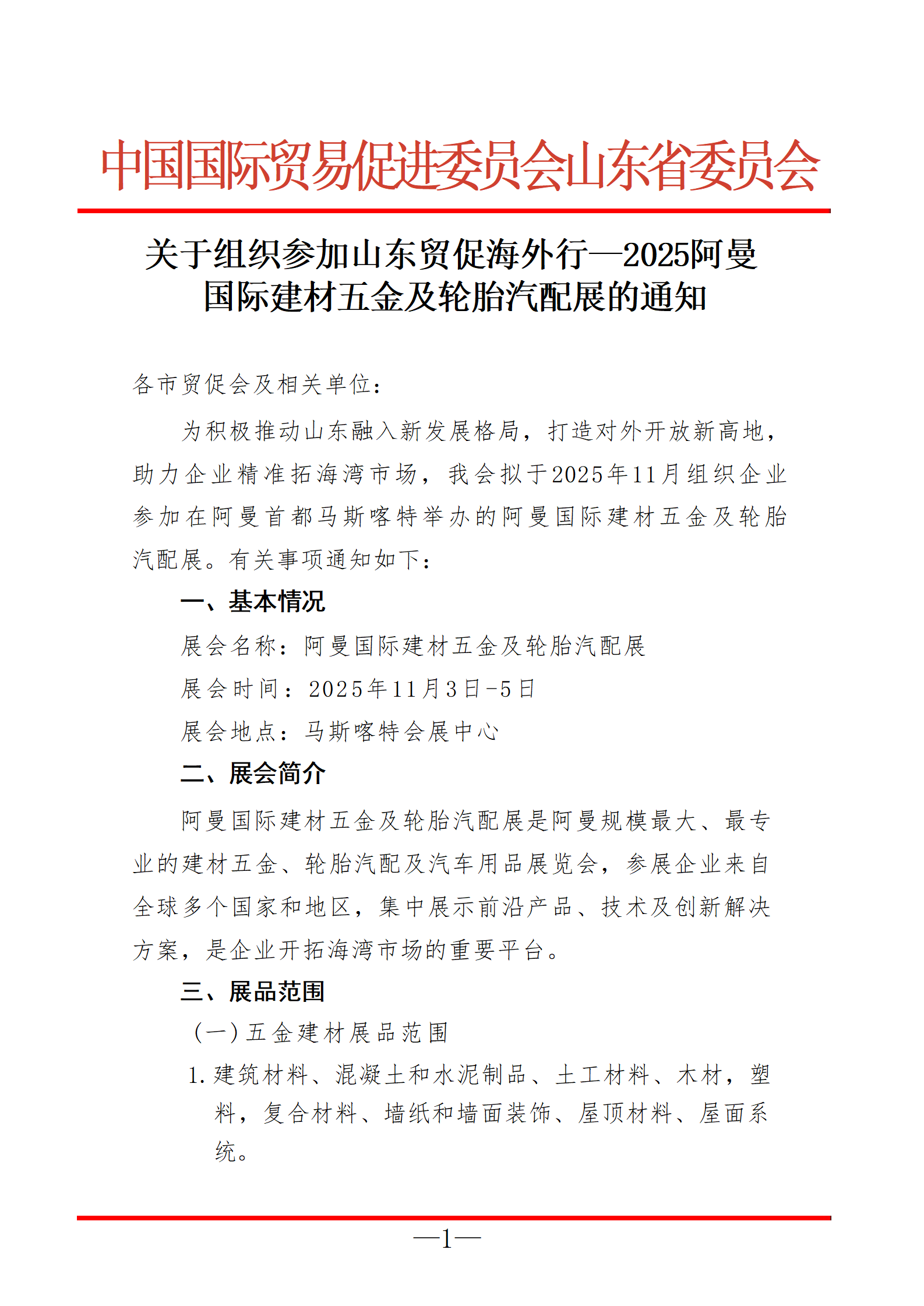 关于组织参加山东贸促海外行—2025阿曼国际建材五金及轮胎汽配展的通知