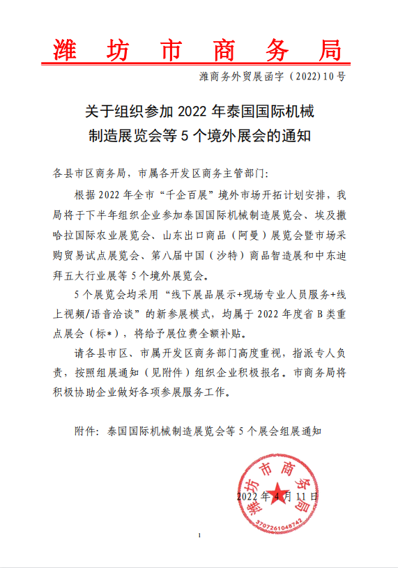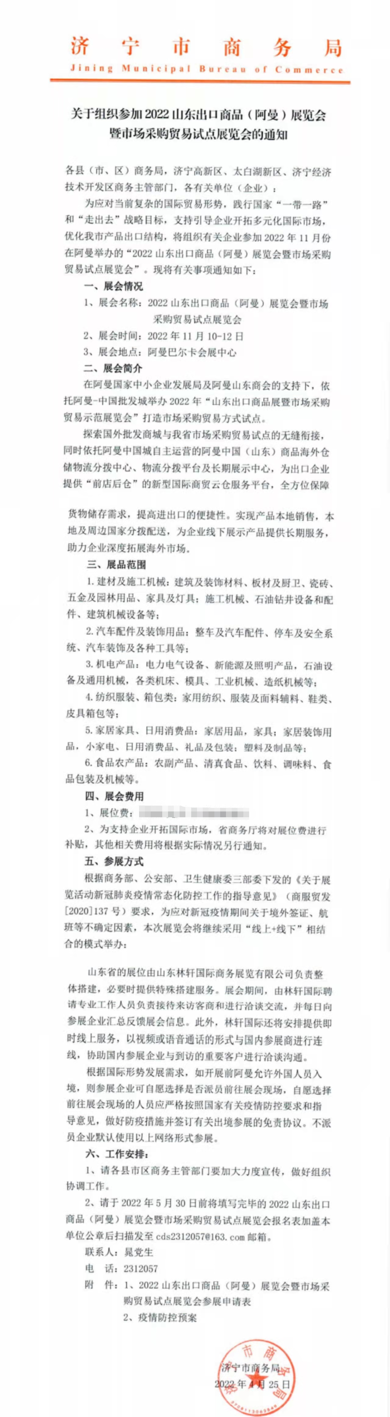 山东各市关于组织参加2022山东出口商品(阿曼)展览会暨市场采购贸易试点展览会的通知