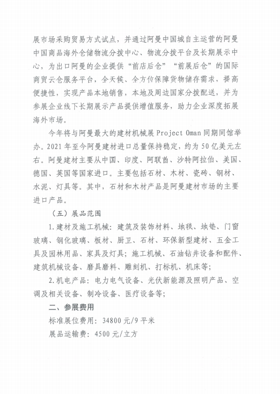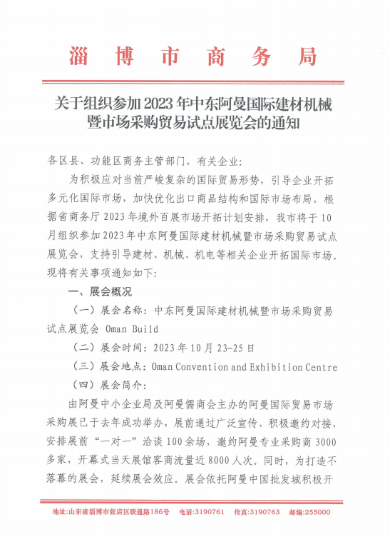 淄博市商务局——关于组织参加2023年中东阿曼建材机械暨市场采购贸易试点展览会的通知