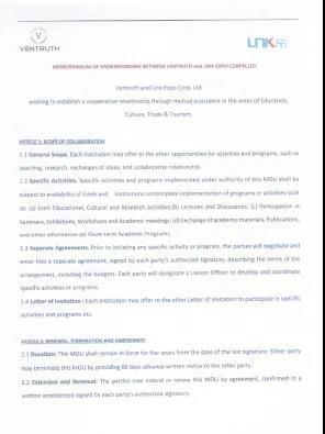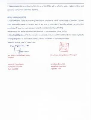 2020年4月15日上午,林轩国际与印度Ventruth贸易公司共同举办线上会议。Ventruth公司成立于2017年,主做进出口、教育文化、旅游及会展业务。通过此次会议,双方就线上线下会展合作、贸易投资促进、文化旅游交流等方面的细节进行商定并签署合作协议: